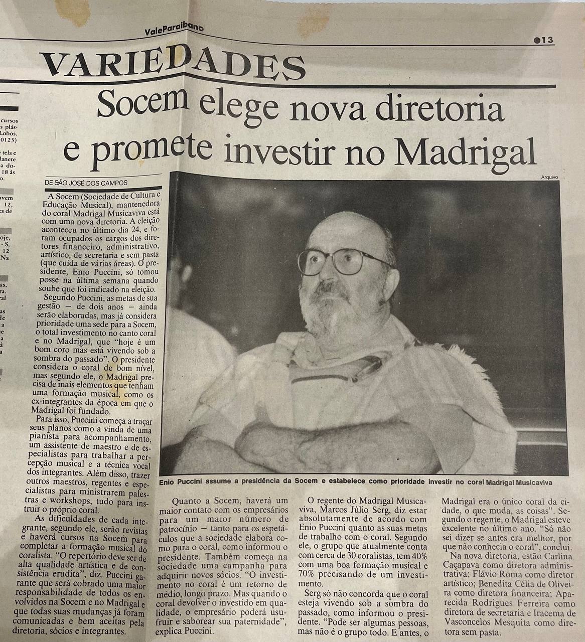 Socem elege nova diretoria e promete investir no Madrigal. A Socem, mantenedora do coral Madrigal Musicaviva está com uma nova diretoria.